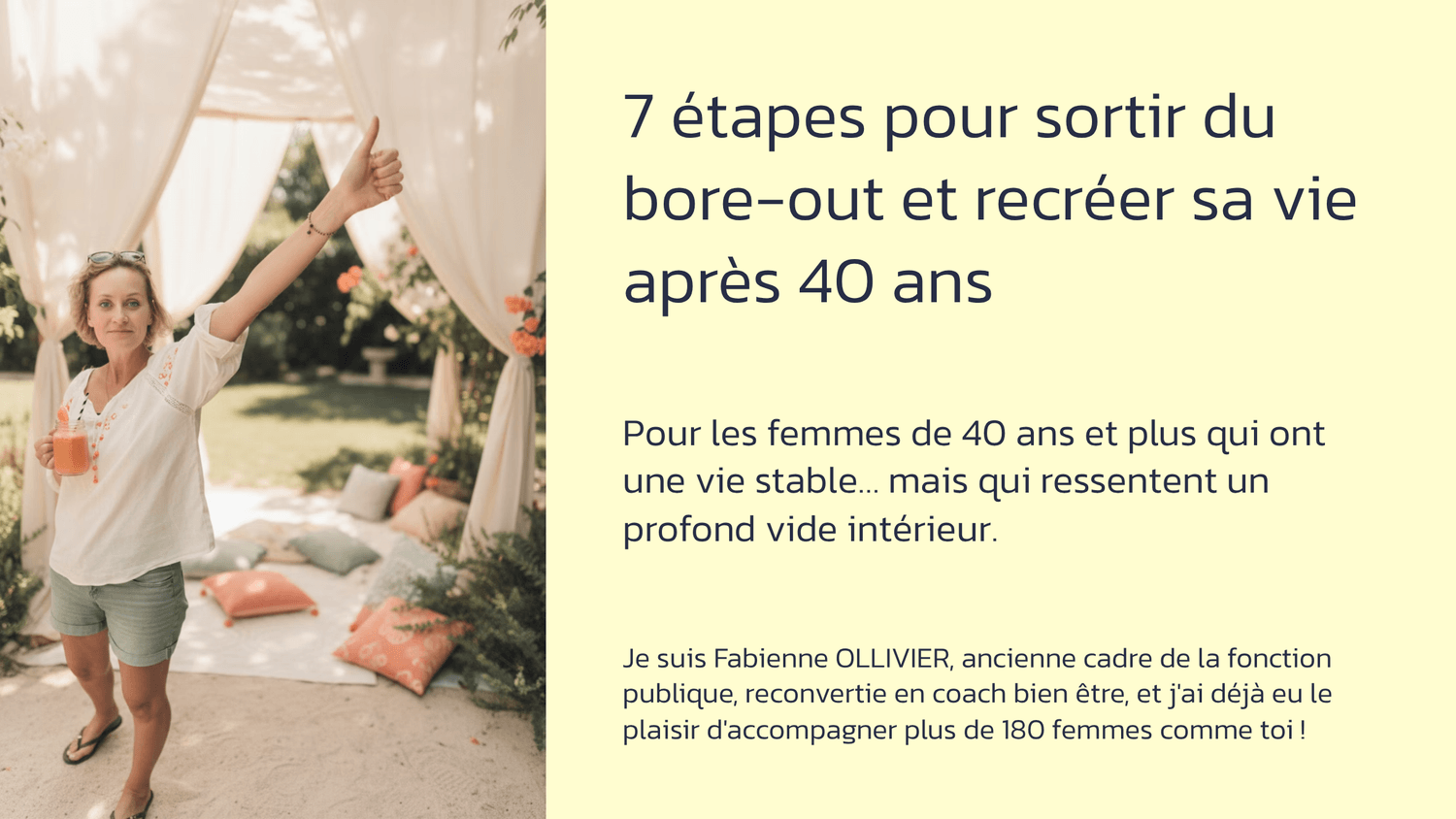 « J'ai enfin osé quitter mon job qui m'étouffait et lancer mon projet. Merci Fabienne ! » – Sophie, 38 ans